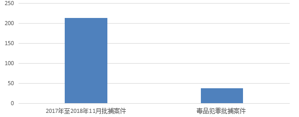 (一)毒品犯罪案件数所占比例大。兰州365官网国内怎么进_365bet线上注册_365体育封号怎么办院2017年至2018年11月共受理批准逮捕案件214件294人,其中毒品犯罪案件37件45人,占总数的17.29%,如下图;