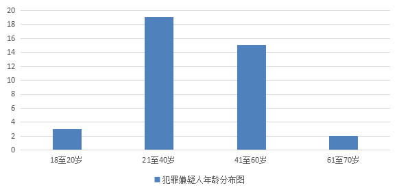 从年龄分布图可以看出,犯罪嫌疑人还是以中青年为主。